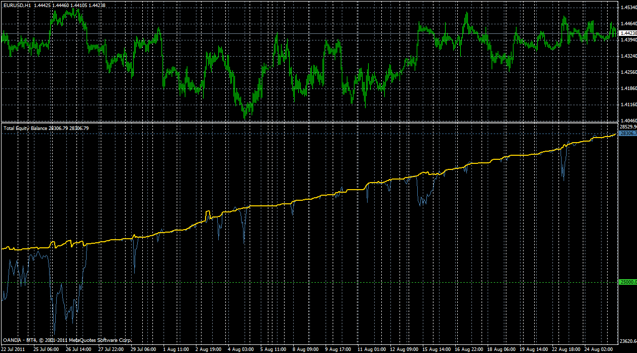 Seguimos con la regularidad de las últimas semanas, incluso diría meses. Claro que debemos ver al eurusd salir de este lateral para tener la verdadera medida de dicha regularidad ya que en lateral con este sistema no es posible obtener pérdidas. Ya hemos superado el 43% de rentabilidad.