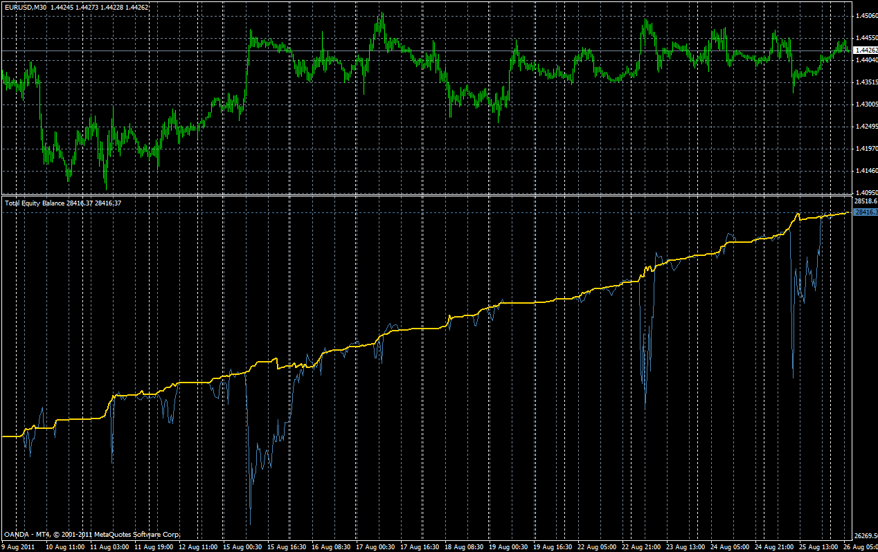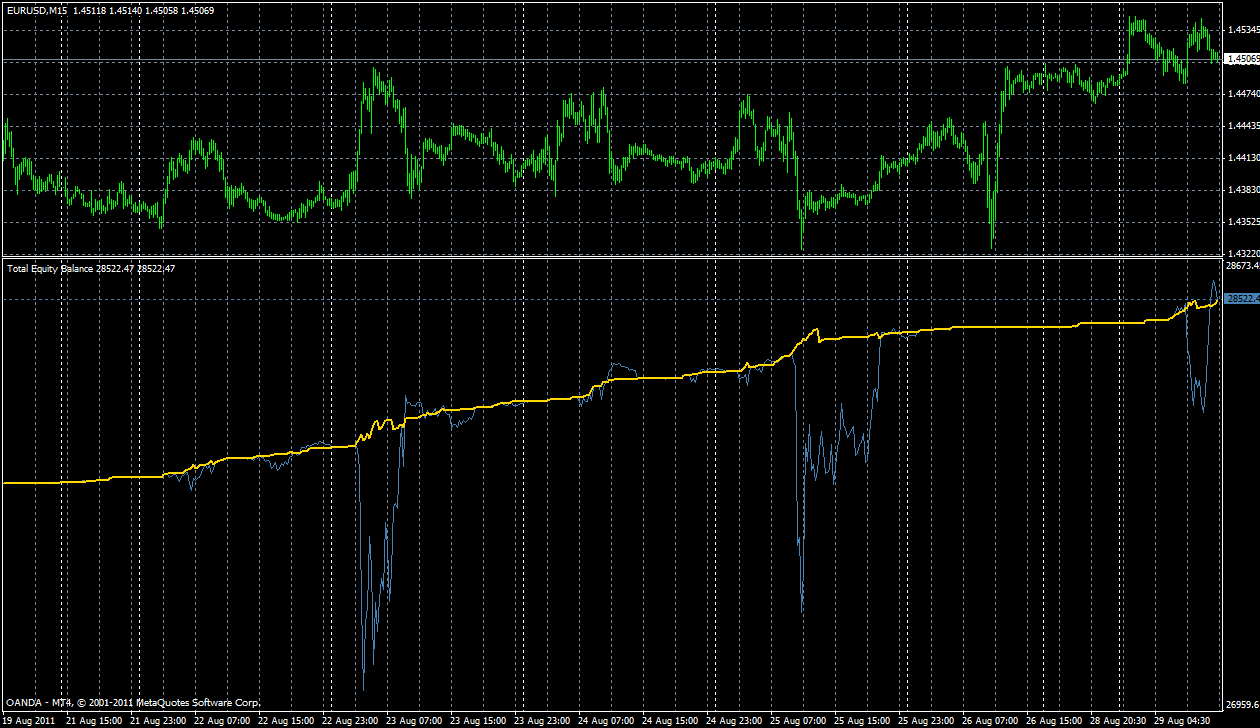 Como dices, no es un planteamiento descabellado. Cuando has diseñado sistemas, sabes que lo de las fiabilidades (% de aciertos) es un mero parámetro estadístico que depende fundamentalmente del tipo de sistema y de los ratios P/L utilizados. Para mí es una anécdota, igual que si estuviese diseñando un sistema para capturar tendencias de más de 800 pipos, la fiabilidad que tendría puede que no superase el 10% y el sistema podría tener perféctamente unos DD máximos y una rentabilidad anual similar a la de esta prueba. Lo que si es cierto que a la gente le llama mucho la atención lo del 95% de operaciones cerradas en beneficios, pero eso es porque lo asocian a "aciertos" y la realidad es que es el propio precio el que se encarga de crear esas estadísticas, y no mi capacidad de acertar el movimiento futuro. PEro para entender esto, hay que entender el sistema. En tu caso tengo la certeza de que sabes de que hablo.ROBOCO escribió: Lo que tu planteas no es tan descabellado ...si se dispone de un gran capital. De hecho, sabes que muchísimos HF usan técnicas de scale in- scale out todo el rato, fundamentalmente para erradicar la elección del timing, de tal forma que incluso equivocándose en el setup salen con las operaciones promediadas ganadoras y obtienen porcentajes de aciertos superiores al 90% sin despeinarse. Más aún, lo hacen sobre barras diarias o semanales con lo que la ganancia media por operación es de muchos puntos.