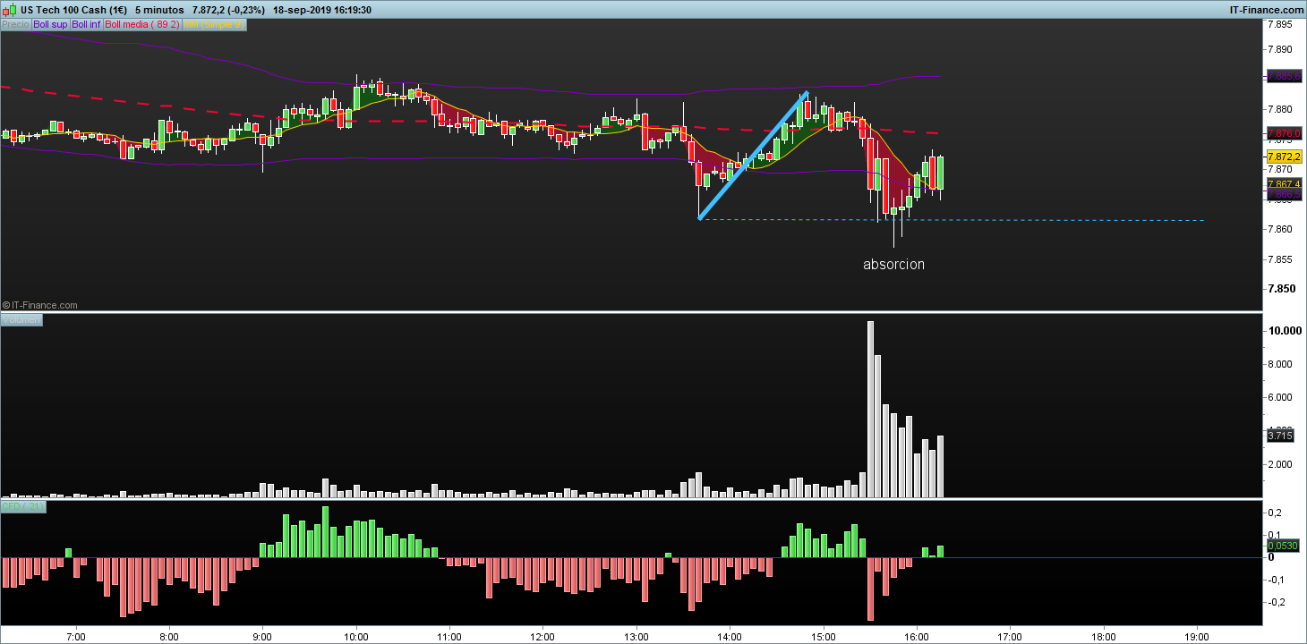 A las 16 horas 3420 contratos en una vela que no mueve el precio
