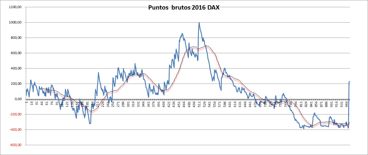 En el momento menos pensado es cuando he vuelto a pillar la comba, aunque he estado metiendo mas mejoras, aun seguía sin conseguir una vuelta clara de mi operativa. Los dichosos máximos decrecientes en mi grafico de puntos era un continuo fastidio, aunque ya en las ultimas semanas estaba haciendo un posible suelo que hasta que ya he conseguido aprovechar un buen movimiento del Dax.