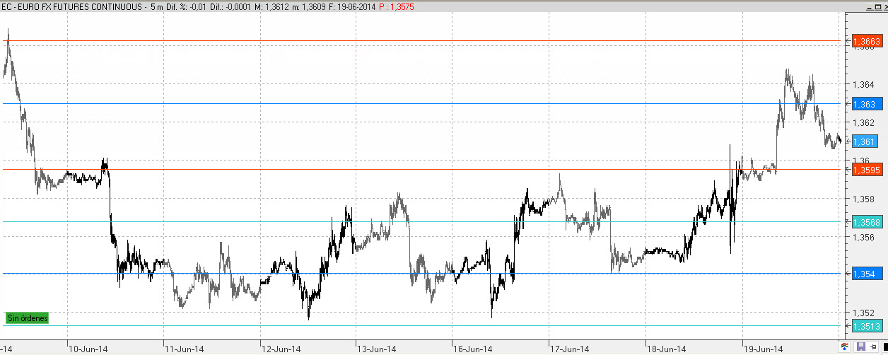 O sea, las zonas de parada de hoy, han sido por orden cronológico; la proximidades del Fibo0 1,3652, y concretamente el Fibo1 1,3648, después, hacia 1,3625, donde casi se junta dos Fibo1s; uno del Fibo0 de abajo y otro del Fibo0 de arriba, zona que ya tuvo paradiña antes al ir hacia arriba, luego vuelve a tener paradiña al volver a ir hacia abajo, y finalmente el nivel donde hay otros Fibo1s, hacia 1,3609.