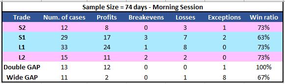 En esta nueva tabla, podéis comprobar cómo se ajustan los niveles de la sesión de mañana y el Setup 1 de la tarde.