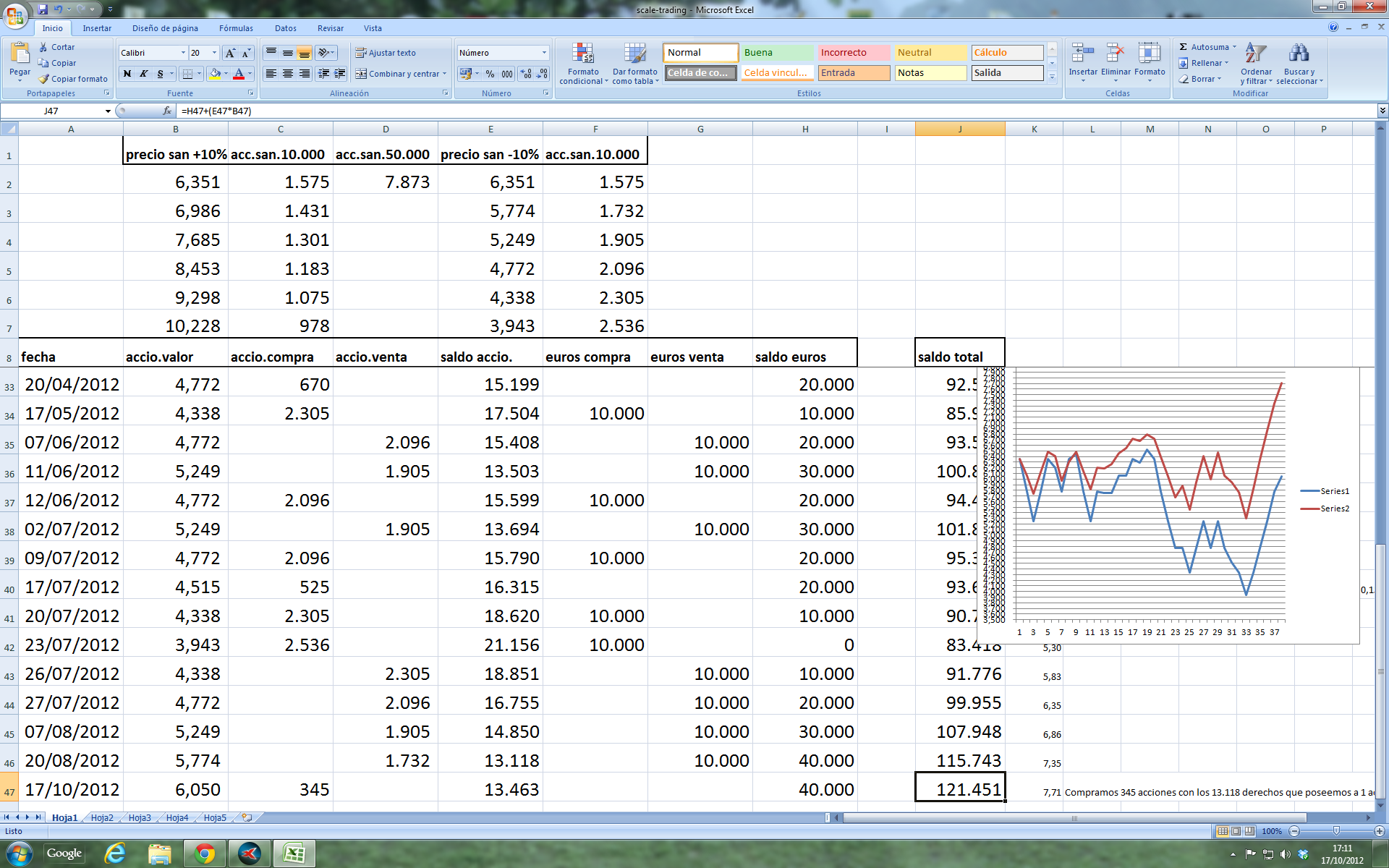 Seguro que meto la pata, pero me pareció entender que empezó comprando y lo que hace cuando sube x vende parte de las compras, que no es lo mismo que ponerse corto.La pega que tiene es que se produzca un tendencia fuerte y duradera... te quedas con el culo al aire