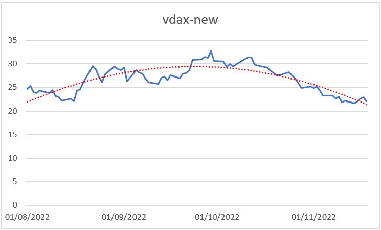 A modo de ejemplo, si nos fijamos en la tabla, hemos tenido 43 días en los que el valor de VDAX-new se ha situado en el rango 25-30 puntos.