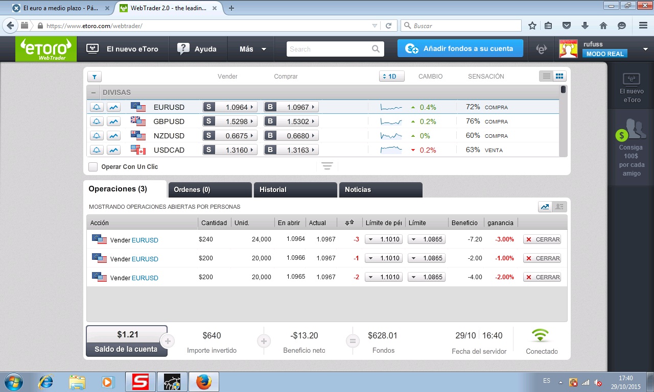 En aquel momento, cuando me abría dicho corto y andábamos por el 1.11, dije que "esto no tenía frenos hasta el 1.089". Que ahí tenía un objetivo-resistencia importante