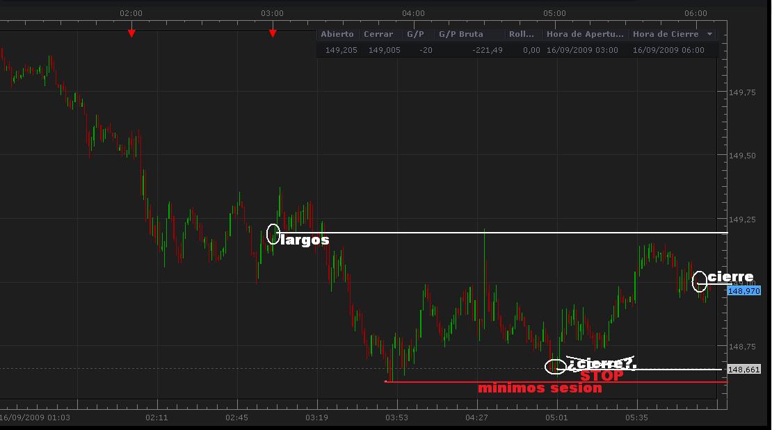 hoy he añadido un parámetro nuevo al sistema. si el cierre coincide con mínimos de sesión (razonables, 5, 10 puntos) no se ejecuta el cierre, se pone stop en esos mínimos, y se deja fluir la operación una hora más. esto nos hubiera evitado cerrar ayer y hoy en mínimos. concretamente hoy de -60 a -20. estando casi a pre por momentos..