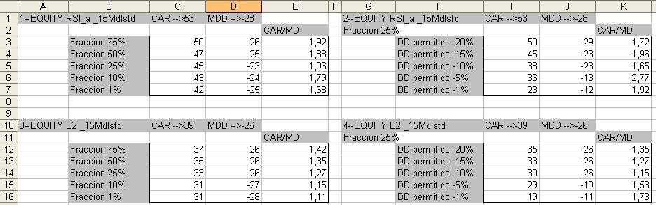 En la imagen dejo 2 sistemas, uno con rentabilidad CAR del 53% y Maximo DD del -28%, y otro con CAR 39, MDD -26.