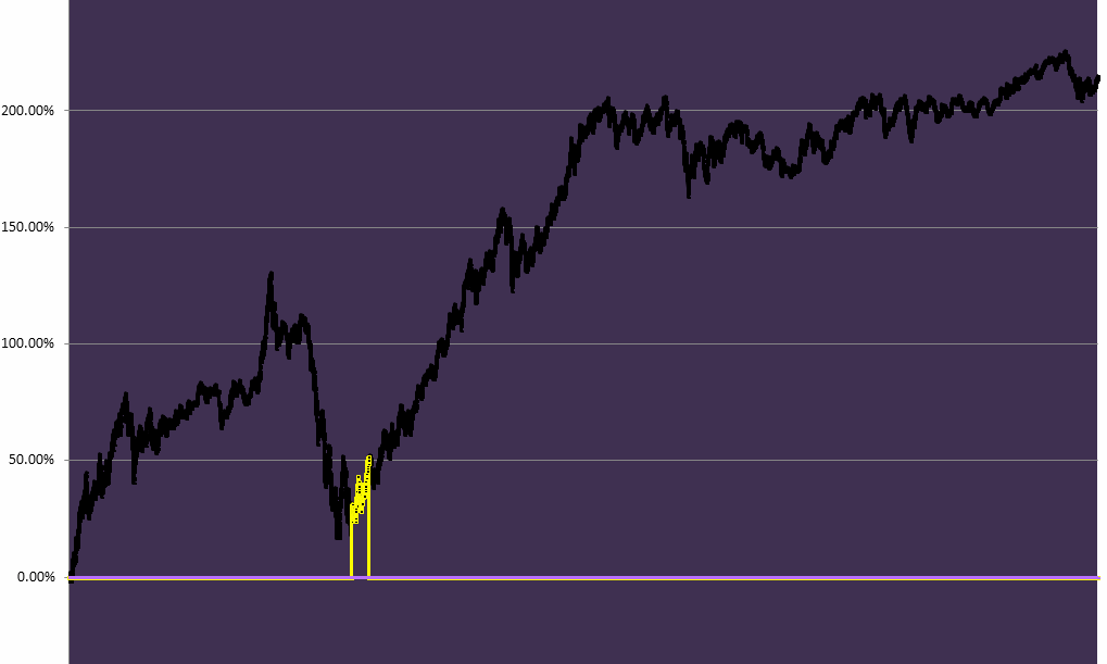 Aunque estoy en acuerdo con la mayoría de cosas que dices, te planteo un juego de pronosticación de suelos de mercado, donde la mínima es que todos los activos rigen las mismas condiciones algoritmicas y la máxima la imposibilidad de pronosticar la volatilidad que se establecerá en el recorrido, de hecho que puedes saber cual es el timing correcto pero por otro lado deberás de gestionar la volatilidad.