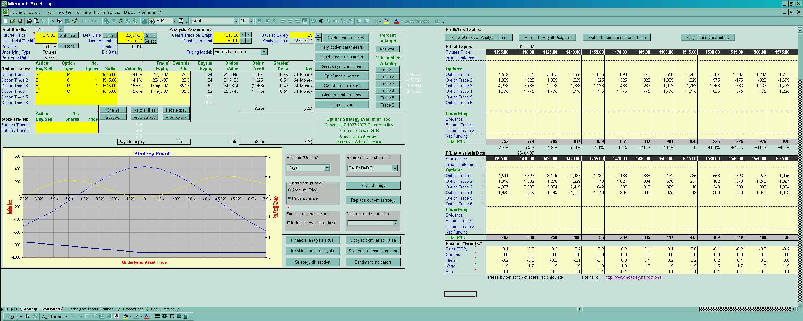 “Si la cotización actual de mercado para una opción está por encima del valor teórico de esa opción, esa opción se considera sobrevalorada. En teoría un trader puede ganar un ligero beneficio vendiendo opciones sobrevaloradas. Por el contrario, si la cotización actual de mercado está por debajo del precio teórico de esa opción, esta es considerada como infravalorada. En teoría un trader tomaría un ligero beneficio comprando opciones infravaloradas y vendiendo opciones sobrevaloradas.