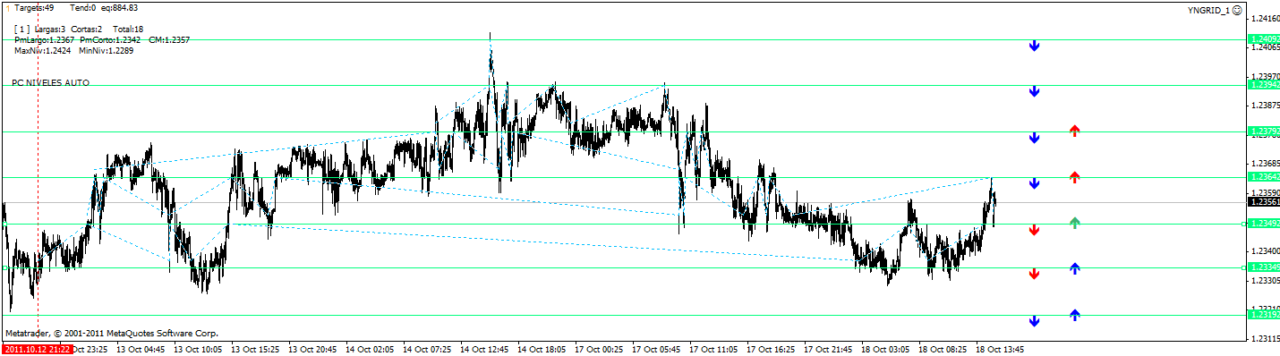 En este caso en concreto, se nos presenta un problema añadido, que no es otro que la distribución de posiciones en el eur/usd es muy mala ya que el DD está motivado por las operaciones del lunes 10 de Octubre que están todas en un rango muy estrecho.