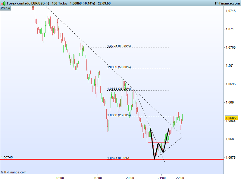 evidentemente x-trader....para mí el euro está bajista y lo veo por debajo de los mínimos de marzo....ahora lo que busco es un largo contratendencia...llevo día esperando al precio en la zona del 1,650 -1,0610 para entrar comprado,