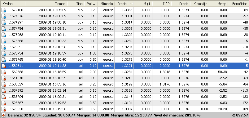 Ahora las posiciones que me molestan son las sell más alejadas que pierden unos 200 pipos.