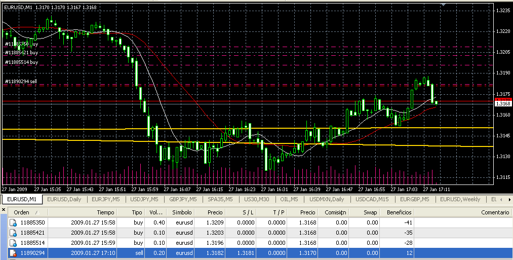 Que conste que yo nunca opero con más del 20% de mi cuenta. En este caso lo malo ha sido que los take profit saltaron. Mi cuenta ayer subio más de 600 euros, pero me cargue la equitity.