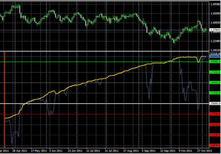 El pobre dolar (que nadie habla de el estos dias), esta agazapado, y deseando que nadie se acuerde de el... pero, el mercado es implacable, y nada mas que se pare el movimiento del euro, comenzara ineludiblemente a dedicarse de lleno al dolar... entonces, entonces veremos cosas nunca vistas... se avecinan unas navidades moviditas... lo presiento, la pena es que llevo dos meses fuera del mercado de divisas, por eso, quizas veo con mas frialdad los movimientos...