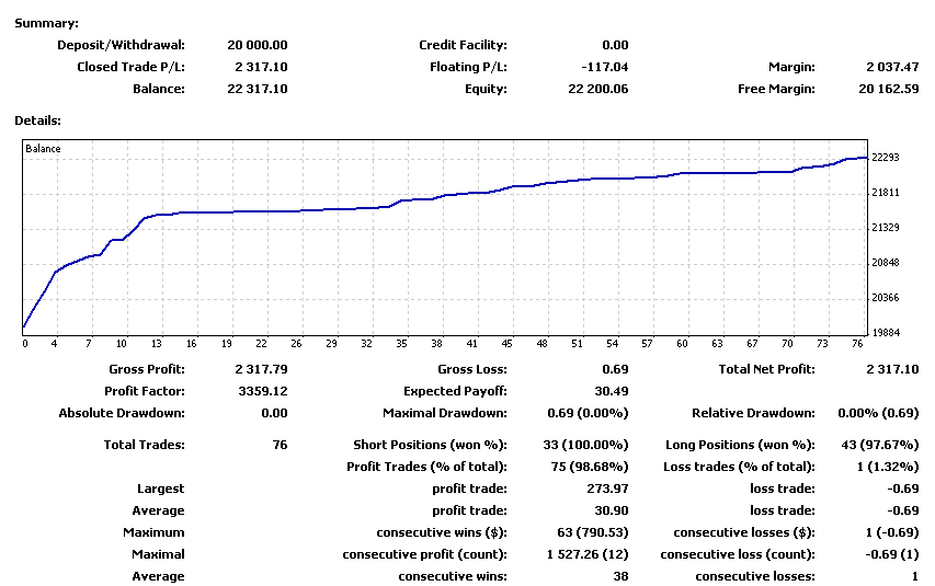 Ya he cerrado 76 operaciones con una fiabilidad imposible de mantener, sólo 1 de ellas perdedora y por 1 sólo pipo.