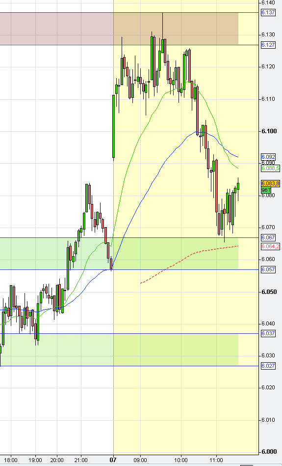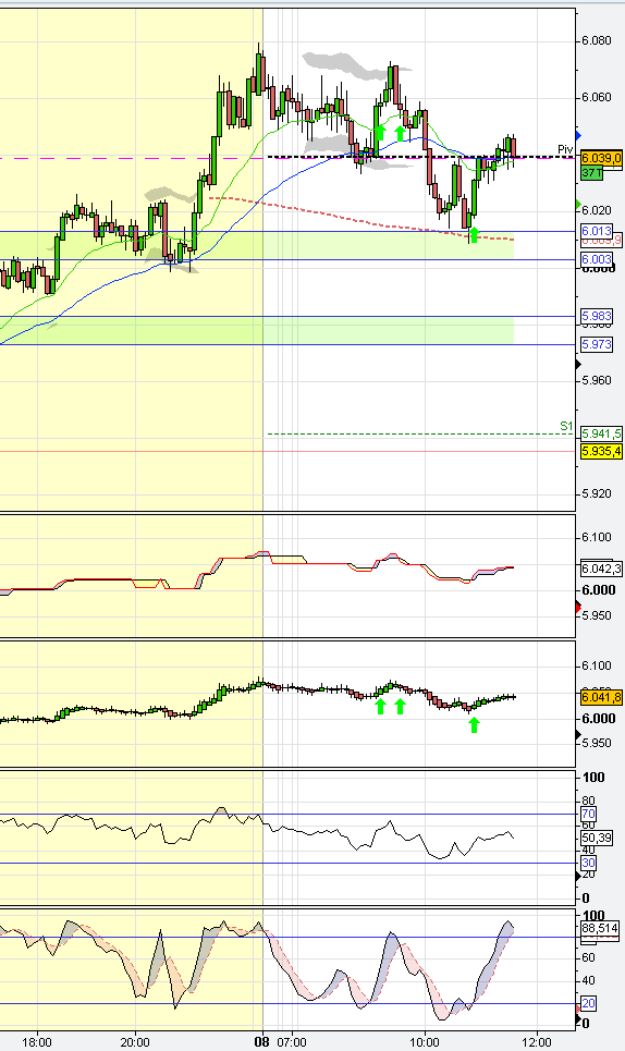 Vemos que parece ser que se ha dado una oportunidad de operativa en una zona con un rebote de 34 puntos por lo que un contrato estaría cerrado a +20, el otro habría quedado a 1 pto de cerrarse. No obstante, yo ahora subiría mi SL a 6020 en caso de que se de la vuelta y me aseguraría +7 puntos en los dos contratos que me quedan abiertos.