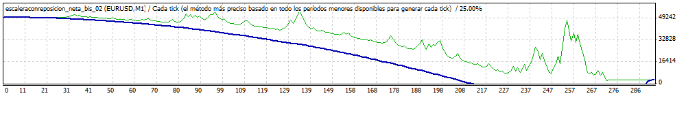 Este gráfico corresponde a una escalera. Qué os parece, bueno, malo, faltan datos para opinar ... Es producto de un backtest sobre eurusd desde febrero de 2010 (no tengo datos anteriores en M1) hasta esta semana.