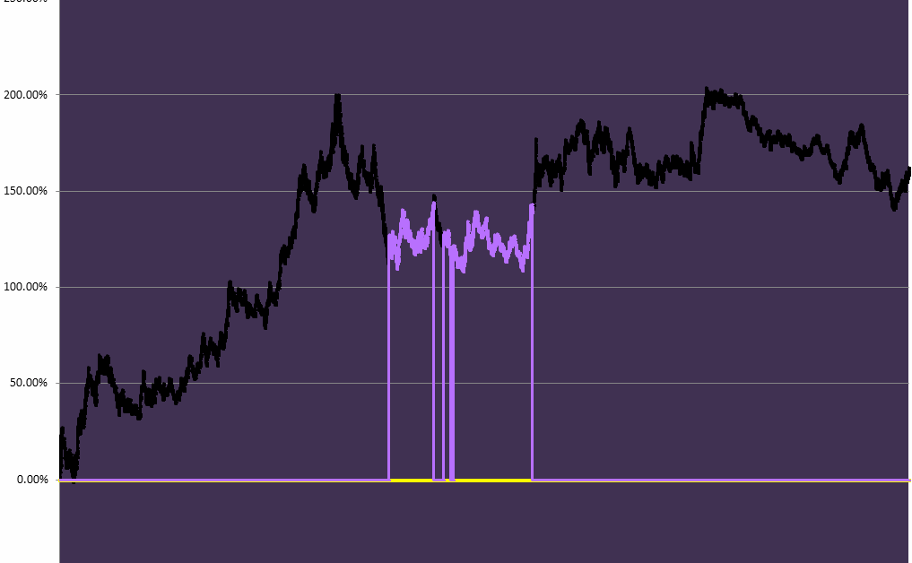 Esta pregunta no tiene sentido, imagina que tienes delante lo que sea, da igual tu no te mueves por impulsos del momento, aquí ahí un estudio muy concienzudo detrás que te determina unas zonas a aplicar tu arsenal operativo, y solo contemplas 3 estados con todos los activos que tu desees y son en timing (posibilidad de operar) en mercado (subido a una posición), o fuera de mercado. Claro también abría que explicar que esta estrategia de ejemplo que no es válida para aplicarla anualmente, si no estas operando con acciones (dado el universo de más de 10.000 acciones que hacen que una proporción pequeña cumplan el objetivo anualmente) en activos tipo futuros, tienes una media de suelos de 5 años, por lo que es una estrategia de media para cada 5 años...pero hay otras estrategias con los mismos principios que se pueden aplicar y de menor dificultad.