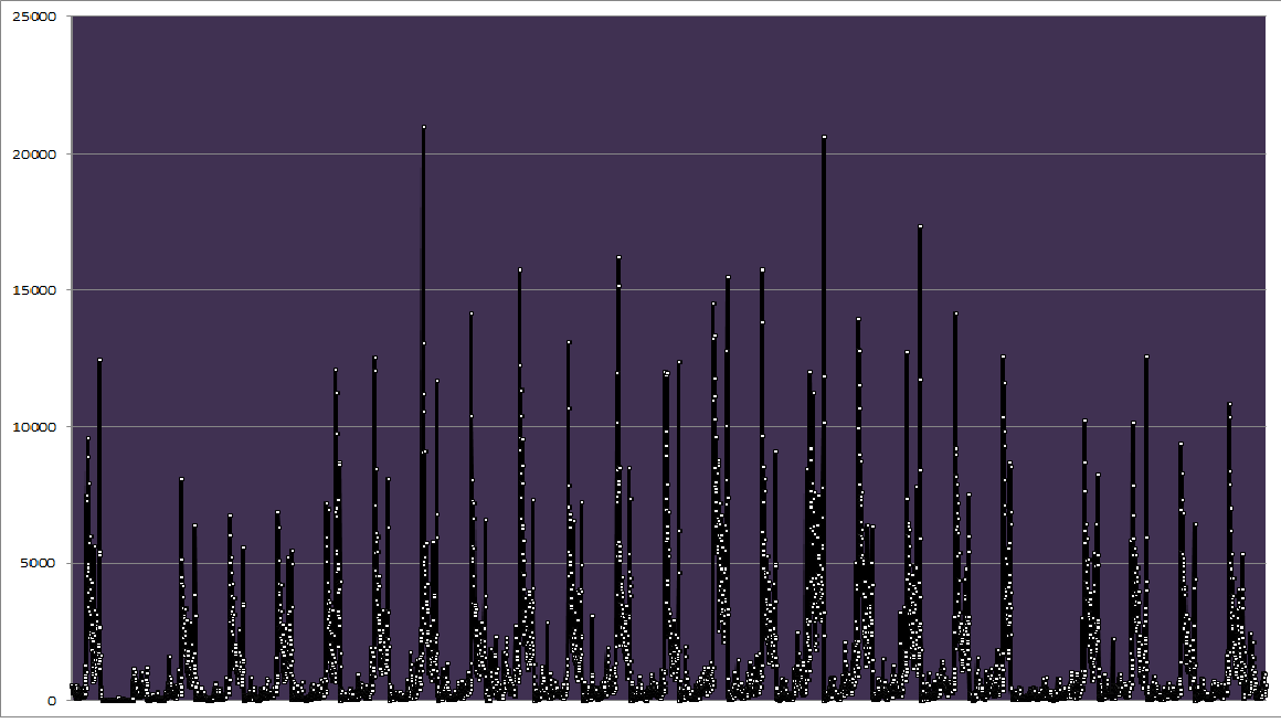 Efectivamente el volumen en el cierre es el mayor, y después el de la apertura y las noticias que dependerá de su trascendencia. En mi opinión, intentar desarrollar un sistema intradía de derivados, basándose en el volumen como único parámetro, y establecer unas franjas de trading o de establecimiento de tendencia, no conducirá a ningún lado. Tendrías que añadir algo más.
