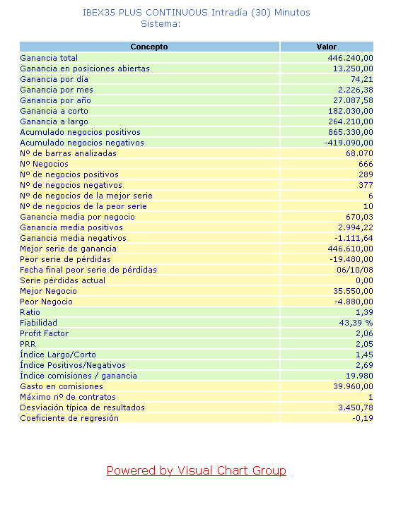 No ha habido nadie que ponga estadísticas mejores que mis sistemas, si que algunos las han puesto pero han omitido las comisiones y resulta que al ponerlas los sistemas perdían dinero o ganaban muy poco. Hay que tener en cuenta que un sistema debe optimizarse sobre un periódo lo más largo posible, de esta manera se optienen menos ganancias que si se optimiza sobre un año, pero hay más certeza en cuanto a las estadísticas, y la probabilidad de que se mantengan.