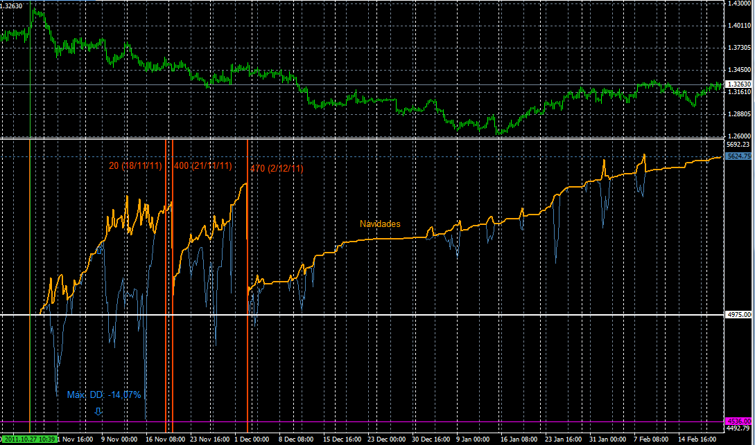 La cuestión ahora es determinar el DD máximo óptimo, que intuyo, bueno casi estoy seguro, que es mayor que el que estoy teniendo desde el 2 de diciembre a esta parte. Me temo que hice un ajuste de parámetros muy severo, pero claro, las rentabilidades siguen siendo buenas y como es cuenta real me cuesta mucho modificarlas o probar algún cambio.