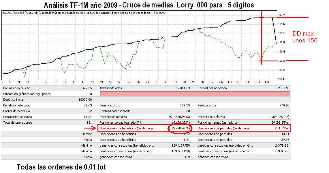 ¿Que si hay sistemas con una fiabilidad superior al 80%?, para muestra un botón, fijate en la imagen adjunta que es de un sismple sistema de cruce de tres medias, sin más aditamentos ni argucias. A ver si se hubiera podido preveer que se iba a tener que soportar 150 euros de DD maximo.
