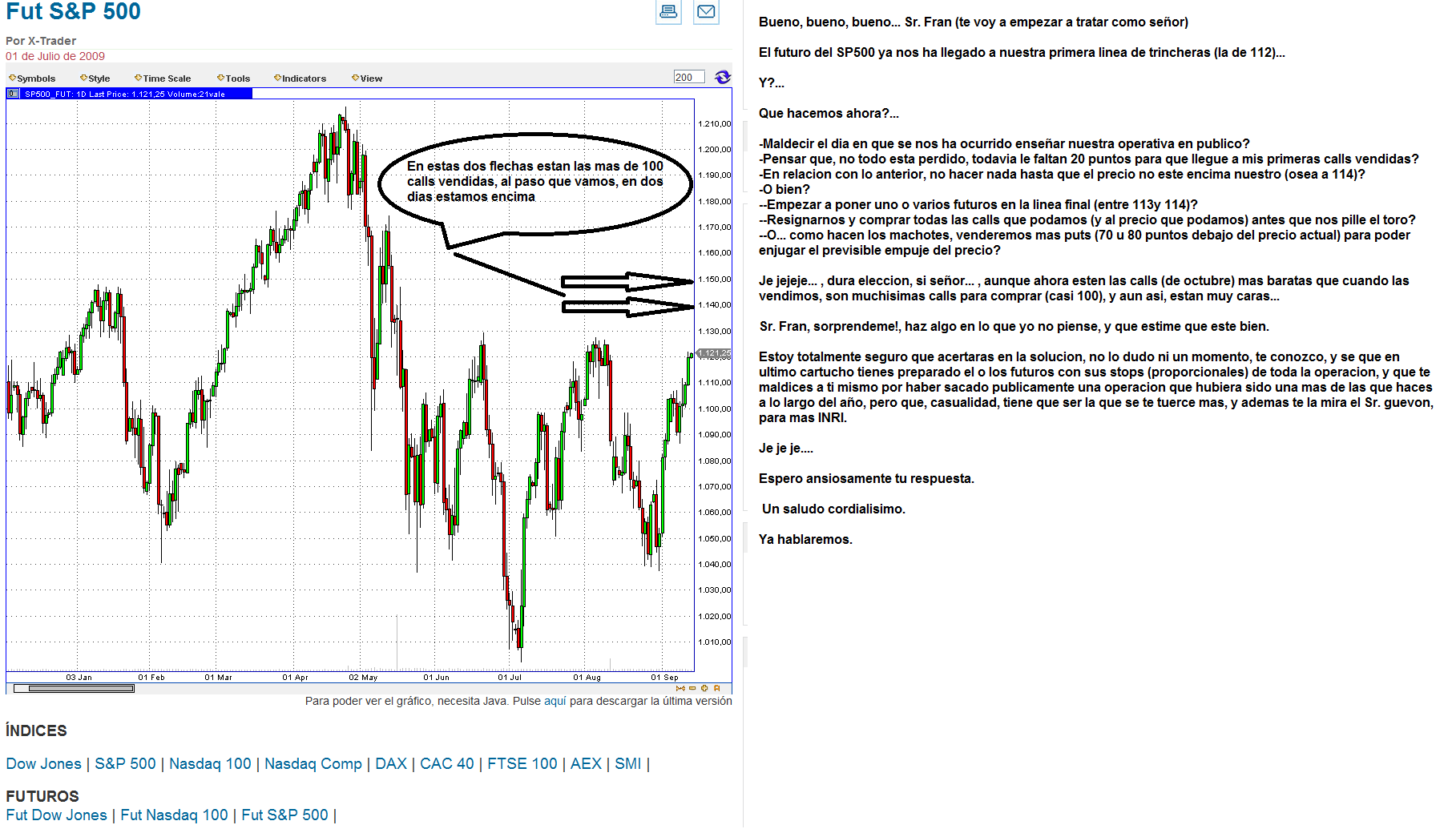 En una palabra, intentaria no perder toda la operacion, aun a riesgo de que los stops saltaran (por un bajon repentino), y tuviera las calls vendidas totalmente desnuditas, aunque eso ya se arreglaria solamente con etfs en la misma linea de las calls (y poniendo una vela a la virgen).
