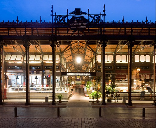 Por la tarde nos fuímos de copas y tapeo por el centro de Madrid. Primera parada en un sitio fundamental si os gusta la gastronomía: el mercado de San Miguel, un mercado tradicional en pleno centro de Madrid, al lado de la plaza Mayor, que ha sido reconvertido en un espacio gastronómico que se centra en los productos de gran calidad y de temporada, con la ventaja de poder probar in situ lo ofrecido acompañándolo de un buen vino.