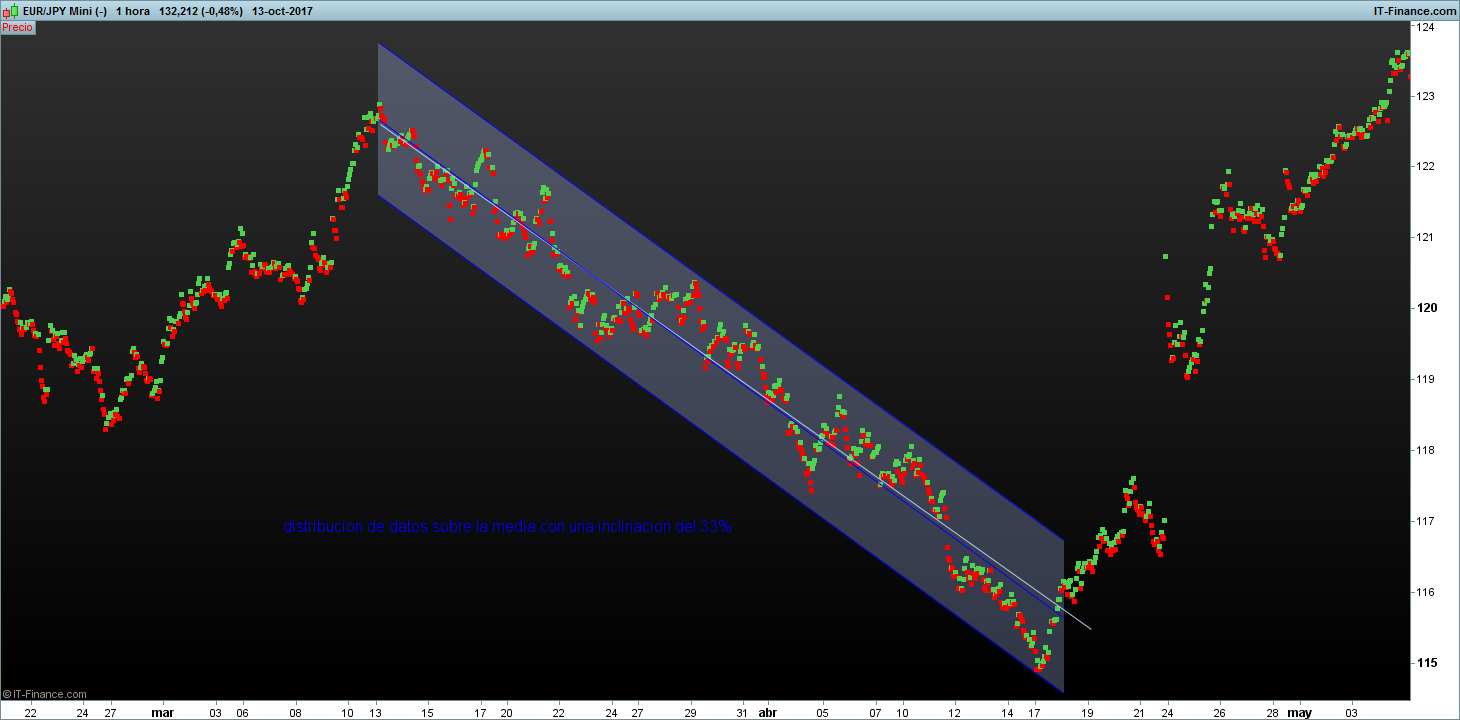 La otra grafica da igual el activo porque es para plasmar en una imagen la información escrita , una vez iniciada la tendencia , a falta de otras herramientas la dispersión de los datos sobre la mediana es una información a tener en cuenta para abrir cerrar operaciones y eso es lo que marca con la inclinación que lleva la tendencia de este ejemplo