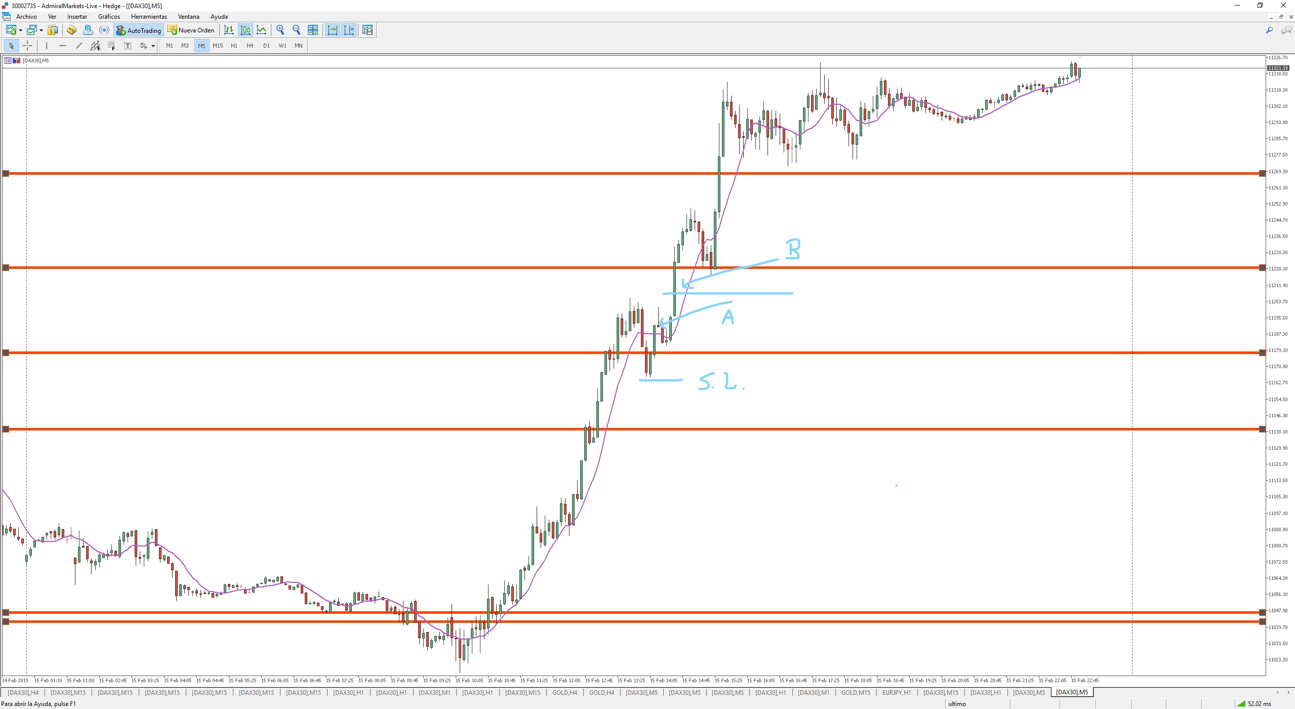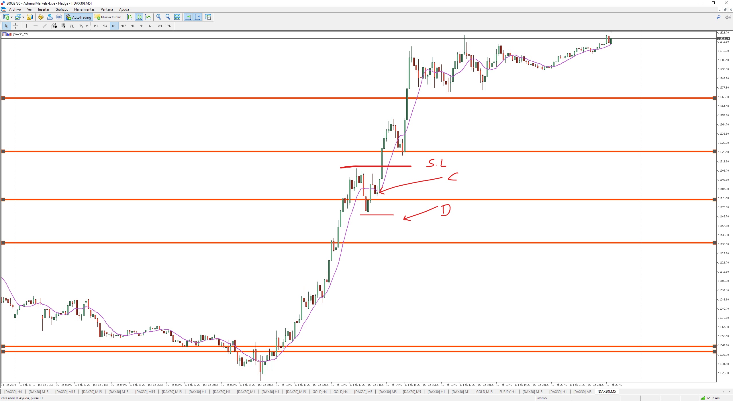 Repasando el viernes: inicialmente continua la tendencia bajista del jueves hasta hacer un mínimo en 11016, pero de ahí, se va directo hasta hacer un máximo en 11.205, antes (en m5) no localizo ninguna entrada por sistema ¿es así?