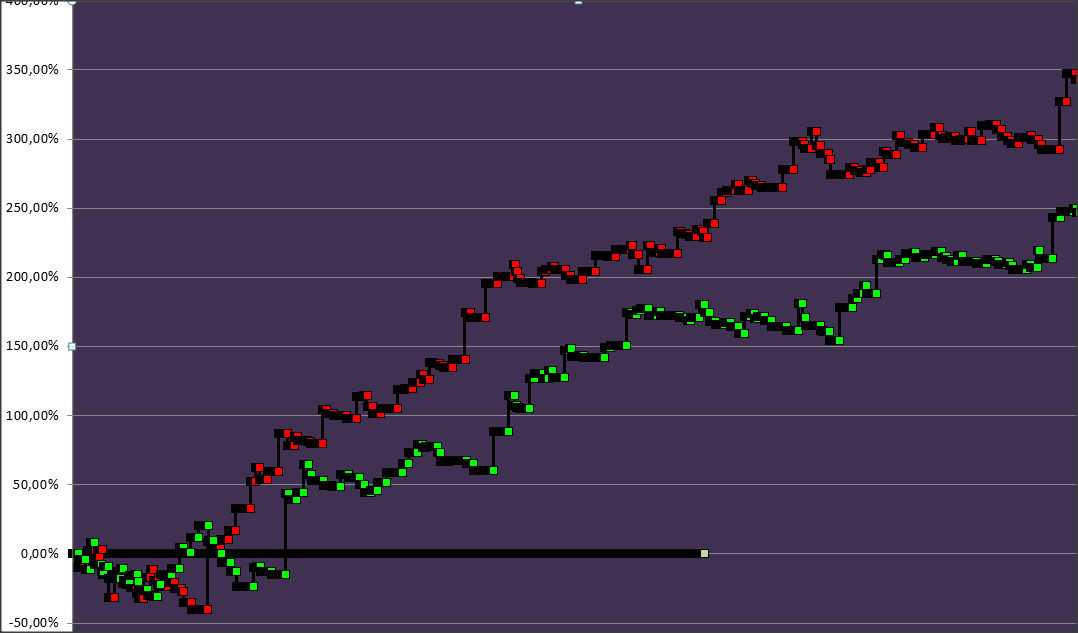 - Agmageton busca estrategias que no tengan casillas con parámetros. Es decir, que no tengan períodos de medias ni nº de velas que componen un patrón, ni distancias de un ATR de x períodos. En este sentido, me parece una línea interesante de investigación (de vez en cuando también busco cosas parecidas) en la que muchas veces el tiempo puede ser un excelente aliado (quiero decir: buscar cosas del tipo "comprar el lunes y vender el miércoles", "vender a las 14.45 h. y cerrar a las 17.36 h., comprar todos los días 20 del mes y cerrar antes del cierre, etc.) Por tanto, mi sugerencia constructiva para Agmageton sería esa: busca patrones basados en tiempo, que no se ven afectados por el período de un indicador o el nº de velas consideradas (Hermess creo que iba un poco en esta línea).