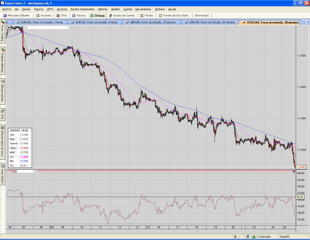 Tremenda la caída ke está protagonizando el USD respecto a sus vecinos CAD, lleva todo el mes de abril prácticamente cayendo sin parar desde los 1,1875, salvo pekeños rebotes fruto de la sobreventa.