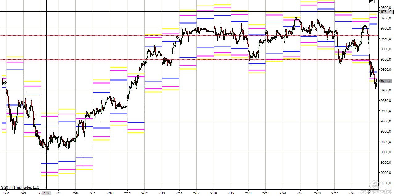 No creo que se den sólo 2 días al mes (10 %) en que las zonas no reviertan, por eso mi comentario anterior. Lo de empezar desde cero me refiero a que nos indiques cuáles son las probabilidades de las zonas, por ejemplo las que yo muestro son z1 aprox 65% de que el minimo/maximo sea ese precio, la z2 representa el 83% y la z3 el 92%. Lo de tradear otros activos no es a lo que me refiero sino cuando el dax pierda su personalidad y tome el control de él el mercado USA fijarnos en que posiciones se encuentran el DJ, SP BUND y cuando digo posiciones es si estan en sus z1,z2, z3, porque es bonito ver cómo por la tarde se puede anticipar ciertas reversiones al tocar SP,DJ simultáneamente sus zonas. Yo veo la Fdax intradiaria como un myt buen soporte para el microtrading siempre en la dirección dela media, pero buscando pocos ptos y muchas operaciones, tal como creo que tu operas actualmente. Saludos