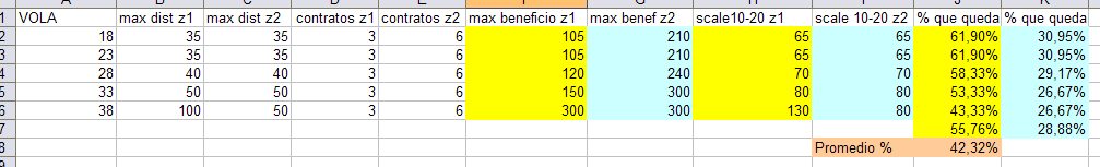 Emat=0.583* Prwin-0.417*PrLoss en donde Prwin y Prloss son las ganancias y pérdidas medias por contrato, sigamos, el equipo de trabajo inicial que formaste realizamos un estudio desde 2009 hasta 2013 de la fiabilidad de las zonas y el valor que obtuvimos era Prwin=35 y Prloss=32 puntos por contrato eso nos da una Emat=0.582*35-0.417*32= 7,06 (positiva). Si aplicamos el Scaleout a la estrategia le vamos a incidir directamente en el valor del PrWin dejándolo en un 42% del que tendríamos si no lo aplicasemos, te adjunto foto para que lo veas claro: