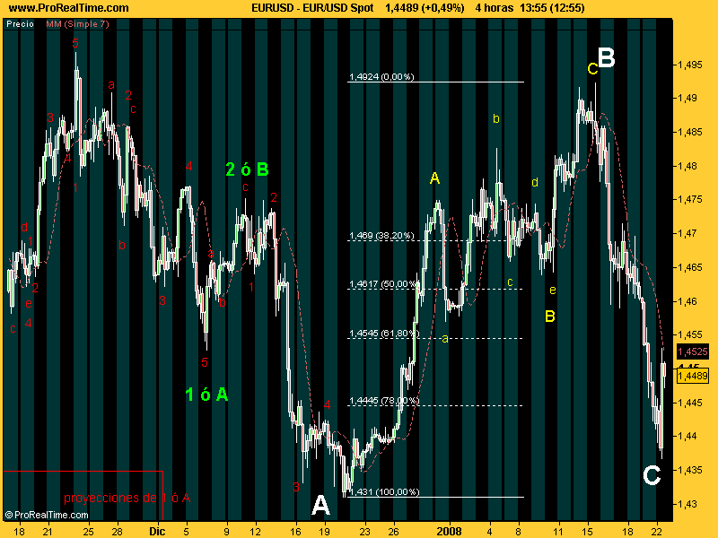 Ná, que se acelera menos que el primer impulso, lo que no cuadra demasiao. Por eso decía que la onda C podía ser considerada un 3 y si es así lo que pasaría es que estaríamos en la D de un triángulo. O sea que no me extrañaría que se diera la vuelta en 1.4830 que es donde A=C. Si lo hace, no obstante, habrá que volver a buscar una entrada larga.