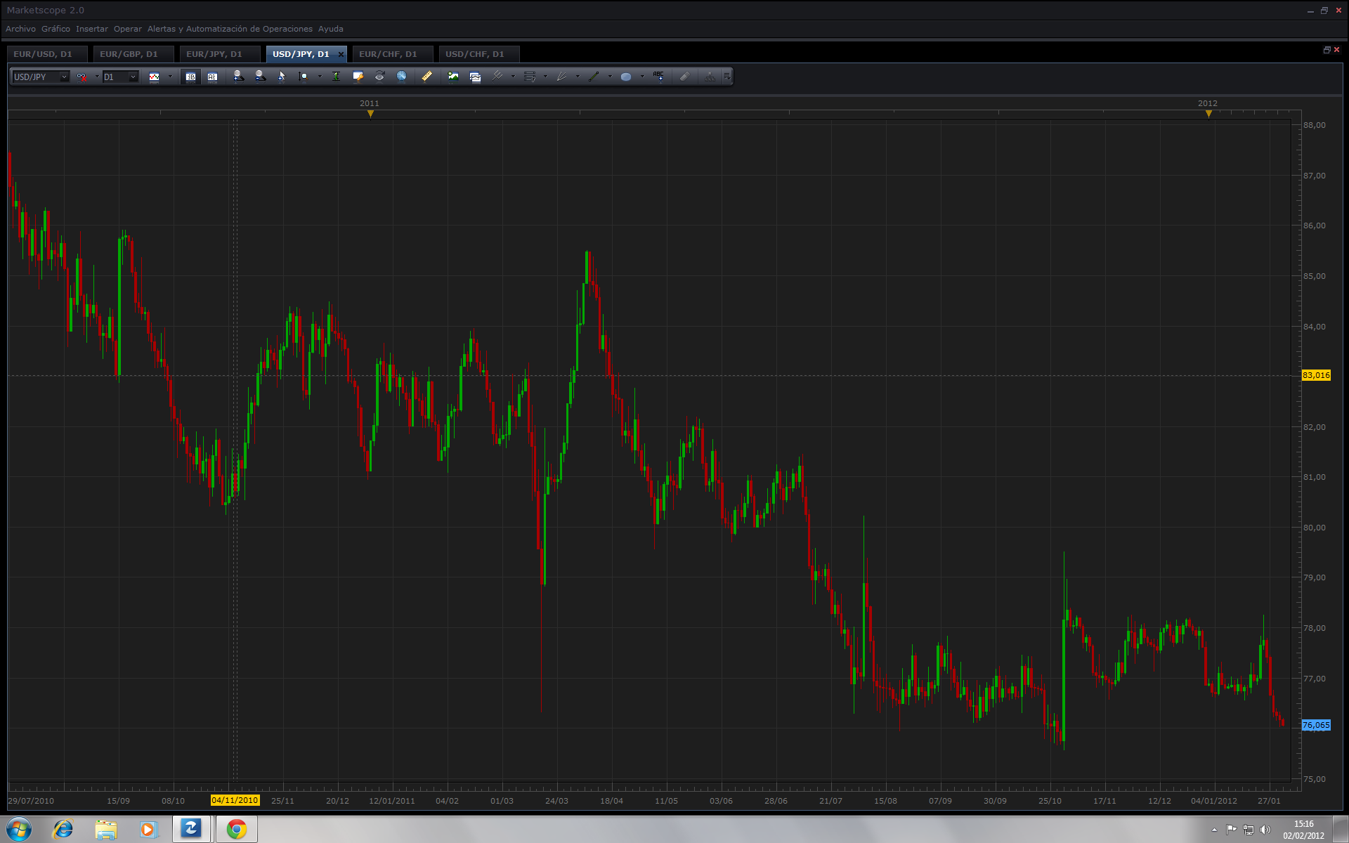 El precio esta en 76 yenes por dolar, ahiii... sin dejarlo bajar, y eso que los japos, estan a esta hora durmiendo, que sera cuando despierten?... tendran las ordenes de comprar dolares?... no las tendran?...