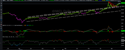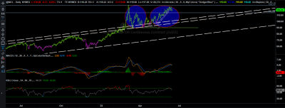 Buenos días , alcista si que es, no espero que se cumpla el doble techo, pero lo mismo baja a buscar la directriz a 102, razones: pierde lta acelerada y pequeñas divergencia en el macd.