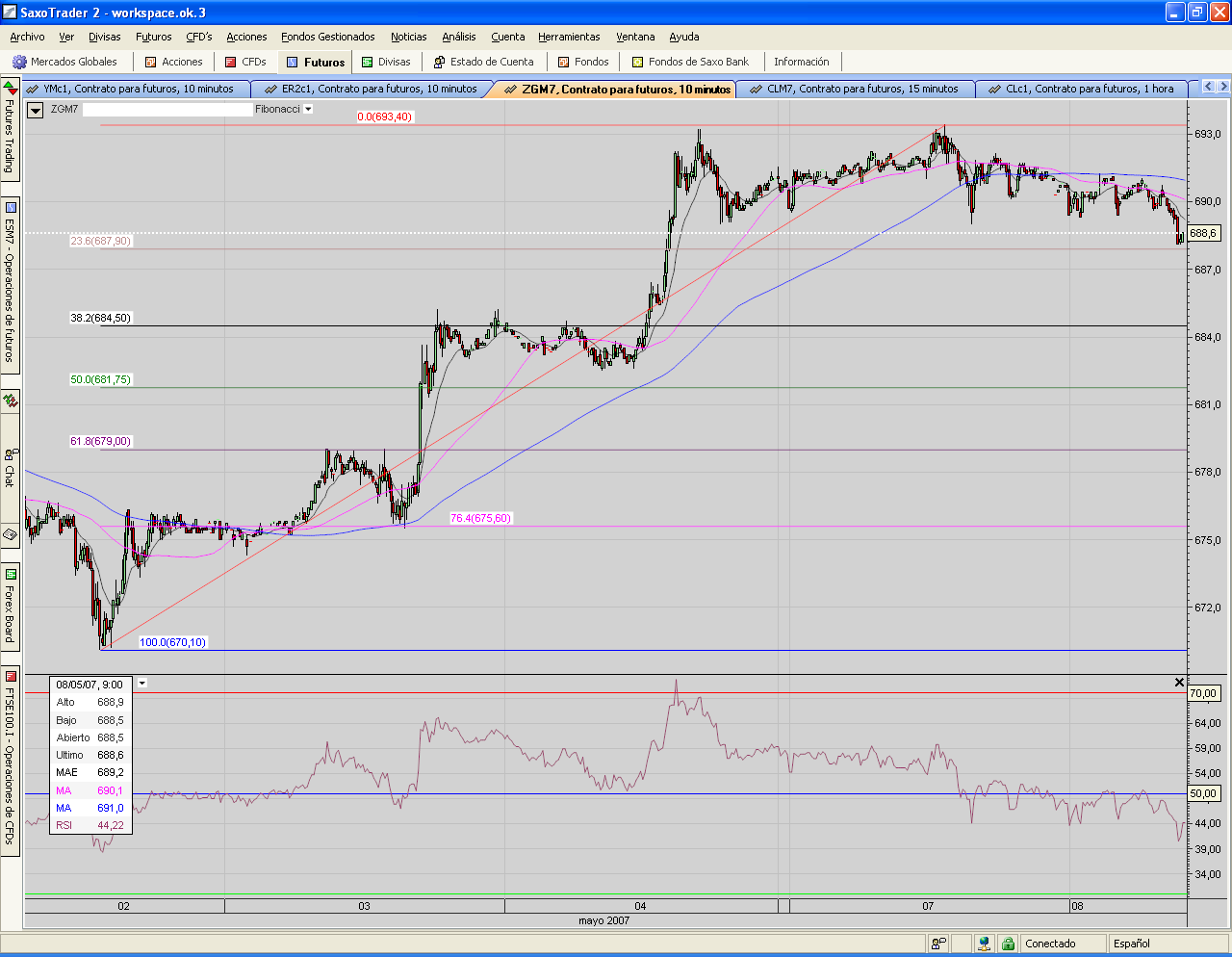 Se podrían intentar cortos en la zona 689,5 - 690,0 - 691,0 , con stop en 691,7 - 692,2 , y objetivos en 684,5 y 679,0