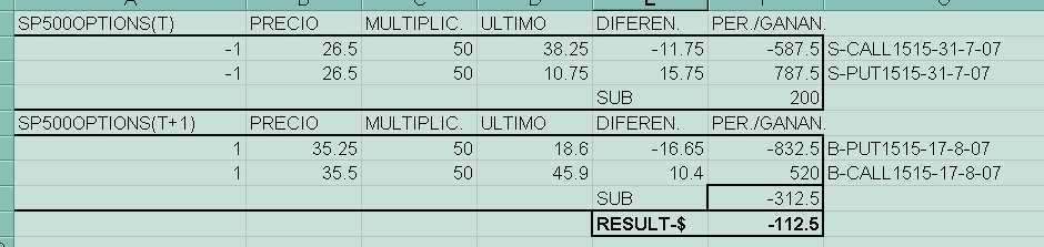Lo de sacto-sacto no es tan exacto,:oops: me he colado y lo que queda son 3 semanas para ver el fruto, la base del error es que deberia haber hecho la estrategia con opciones de vencmiento 17-7-07 y no las del final de mes 31-7-07, pero bueno asi salio asi lo seguiimos y defendemos.