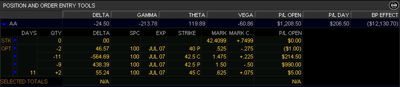 He pensado que a la que esto se mueva un poco podemos vender un vertical para cubrir una de las patas en el sentido del movimiento del precio. Pero repito que se aceptan sugerencias.