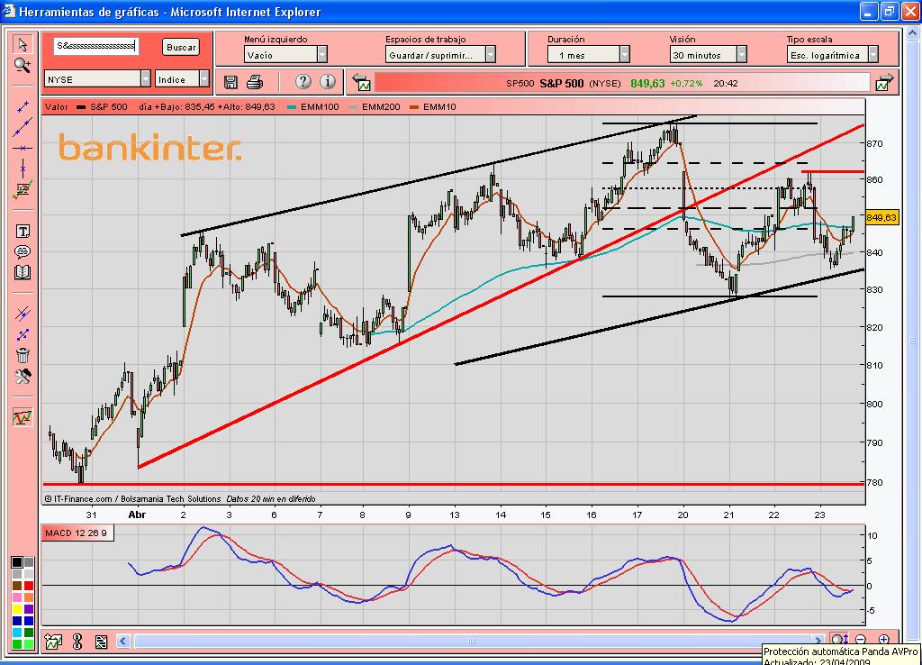 Pero en estos momentos mientras el sp (aunque el fondo es claramente bajista) siga dando tumbos y no pierda minimos, este lateral puede ser fondo, lo unico que queda es intentar aprovechar sus altibajos o posicionarse, con el riesgo que tiene operar en laterales.
