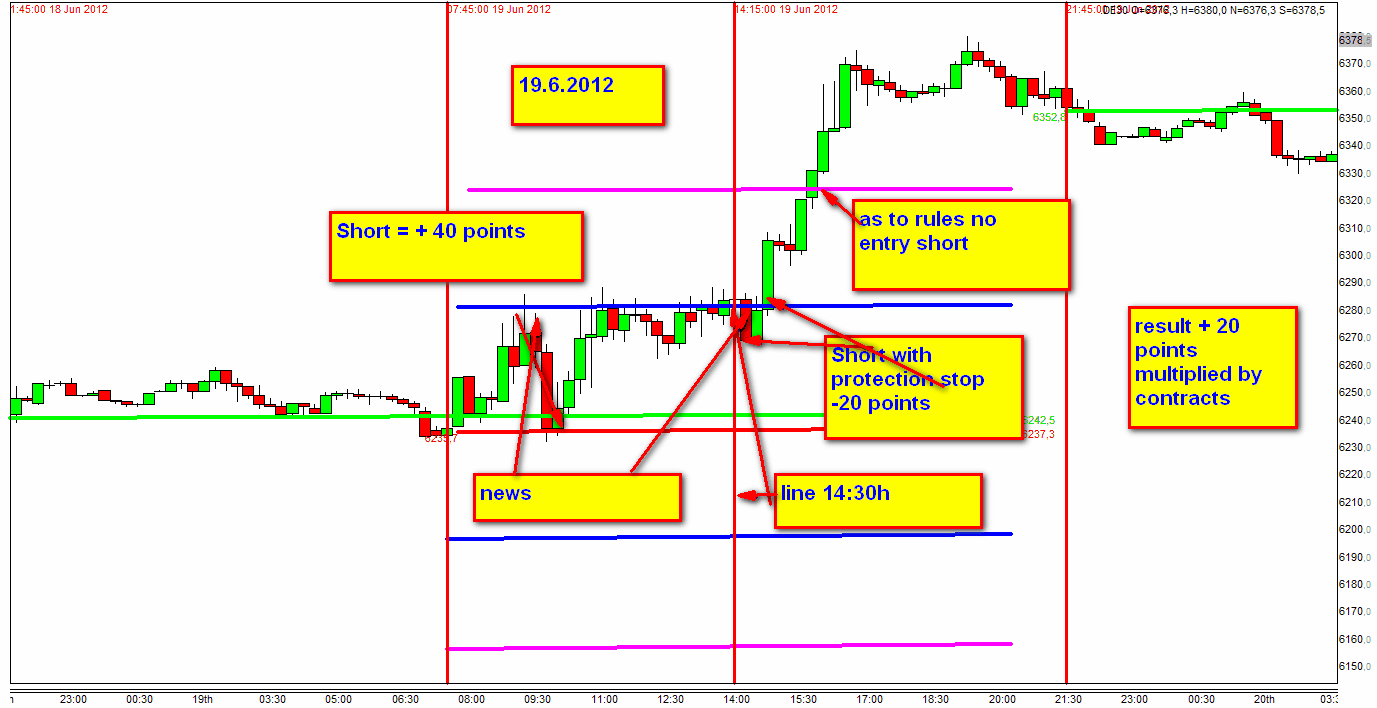 Respecto al día de negociación 19.06.2012 ya he visto que la entrada en la segunda zona corta no se debía producir ya que después de las 14:30 se debe entrar cuando el precio va de arriba para abajo.