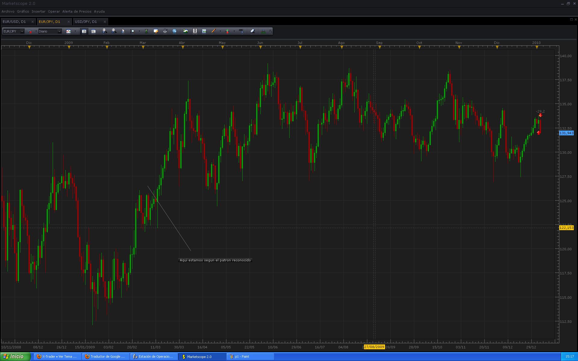 Con la cuenta de prueba que tengo todavia... he abierto dos operaciones apostando a que el euro sube (contra el dolar y el yen)...