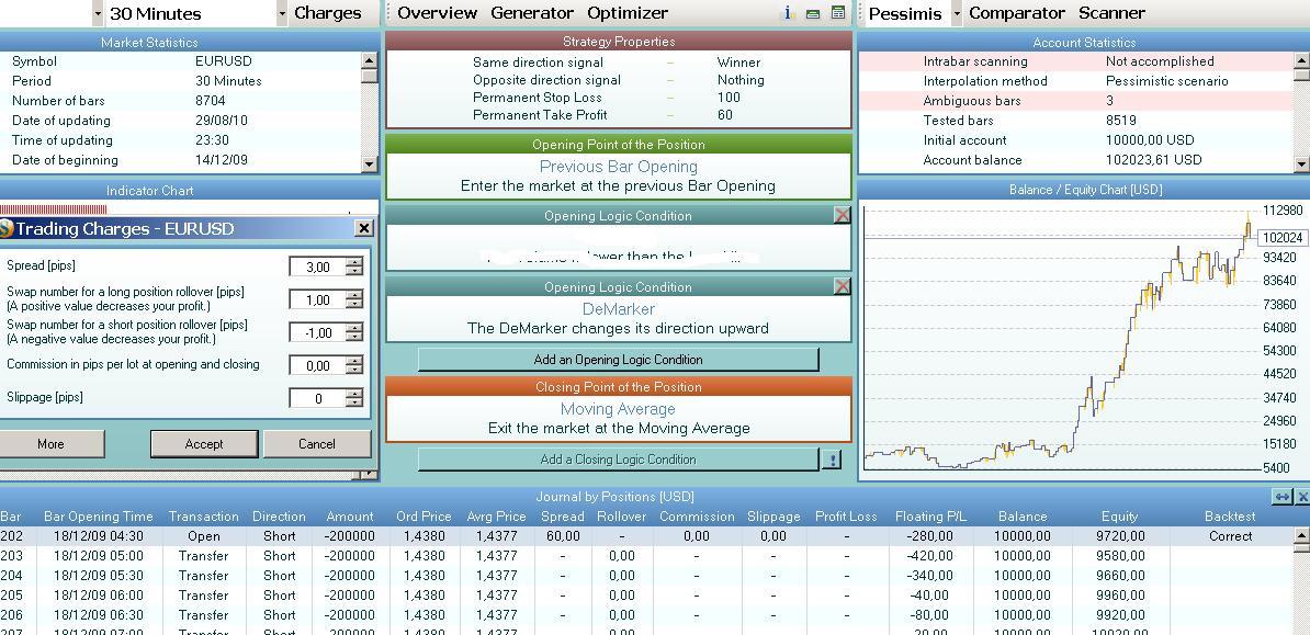 El profit factor: 1.21, este sistema seguramente esta abocado al fracaso, esto es simplemente una prueba de lo que se puede lograr con un poco de optimización, sin ningun indicador mas que el price move