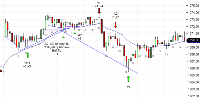 La vela 17 fue una vela de gap y un movimiento de dos segmentos a un mínimo más alto, y es la mejor opción de swing del día. Este movimiento debe intentar romper por encima del máximo del día e intentar lograr un movimiento proyectado de la retracción, esto es 1294.75.