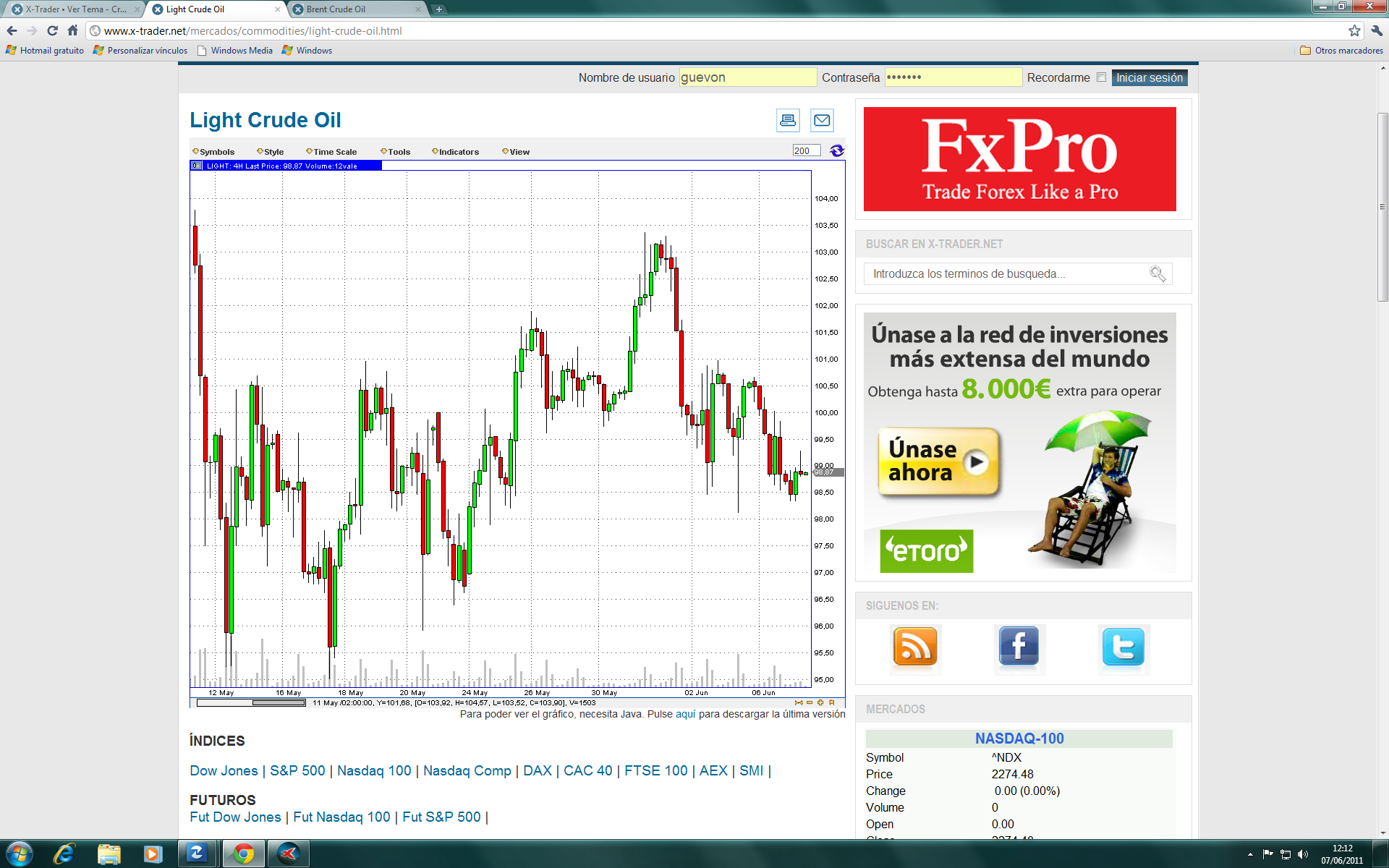 Decir algo!!!... no me dejeis con mi paranoia... el oil va a subir hasta los 105 o 106 antes de parar otro ratito...
