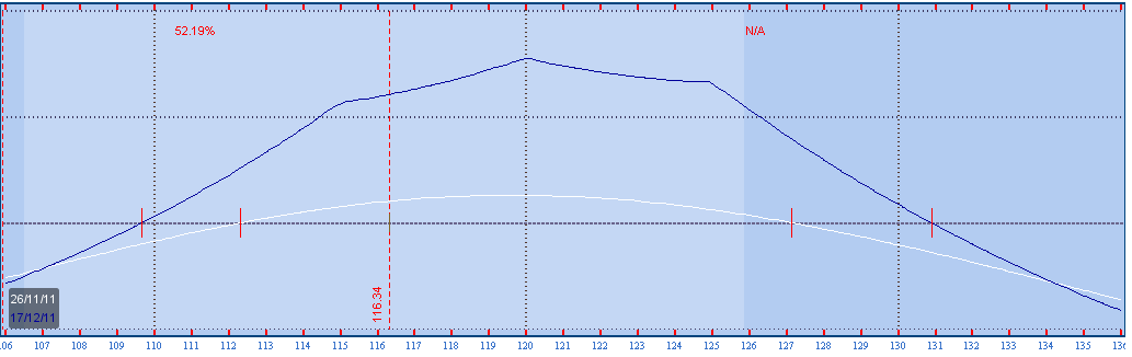 - Iniciar posiciones bajistas (delta negativo) ya mismo. Esta operativa tiene el inconveniente de que tendremos que aguantar el último impulso alcista que queda, que gracias a la confirmación de corto plazo, todo indica a que será un movimiento muy lateral. No creo que rompamos máximos. Si alguien se decide por esta gestión, sería conveniente introducir 1/2 de la posición ahora y 1/2 el próximo día 17.