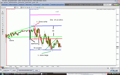 En primer lugar te comunico que tu grafica no es correcta. Las zonas actuales cortas se basan hoy en el cierre de ayer del DE30 ( 5692). La primera zona corta se situa a 5732 y la secunda a 5672 que no ha sido alcanzada. Ten en cuenta que el FDAX vence manana y la diferencia con el DE30 actual es muy poca.