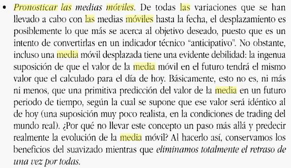 En nuestro caso, que las medias móviles están retrasadas, pero podemos calcular su retraso (al menos la SMA) o medir su retraso.