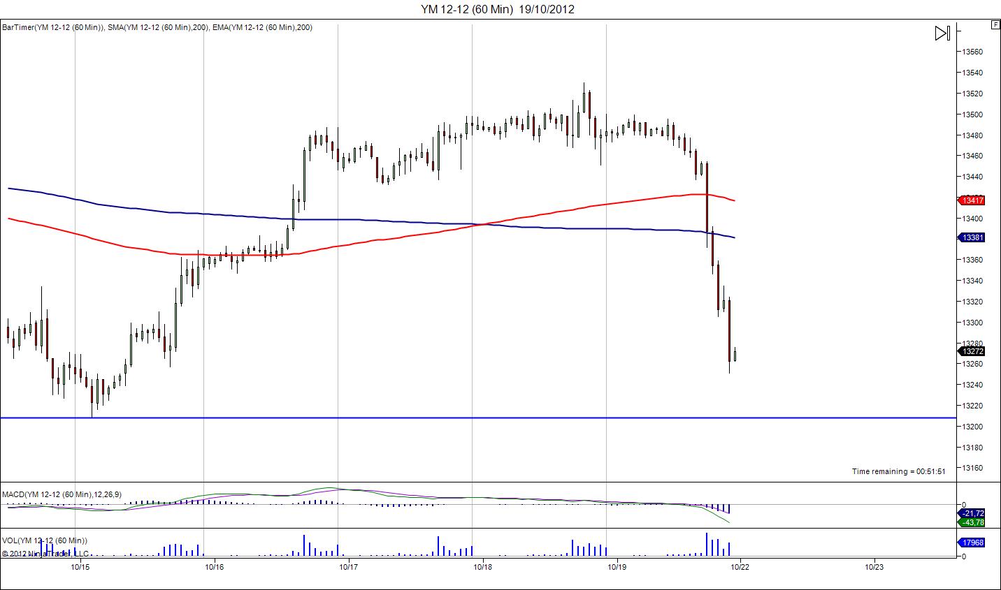 Hoy ha sido para mi un dia de trading raro, he vistp que el día era bajista pero es ahora mismo no para de bajar. Lo achaco a las malos resultados de las compañías americanas, pero es que veo que no es una simple recogida de beneficios. No se,me da la espina que viene una corrección en toda regla, unos 1500 puntos mas o menos.